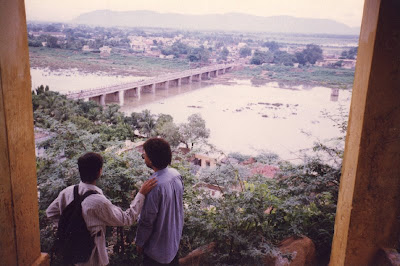 Praveen, Gulli and I took a night bus... I remember a suitcase falling on my head from the overhead luggage rack in the bus. Not once, two times, same suitcase. The owner finally kept it on the floor board. We reached quite early, it was still dark.