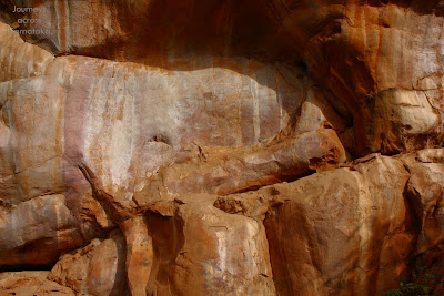 That's a prehistoric drawing board. The location is quit different from the ones seen earlier, most were in rock-shelters but this is a open rock face. Wonder why this spot? Did the painters use ladders or scaffolding to reach the board?